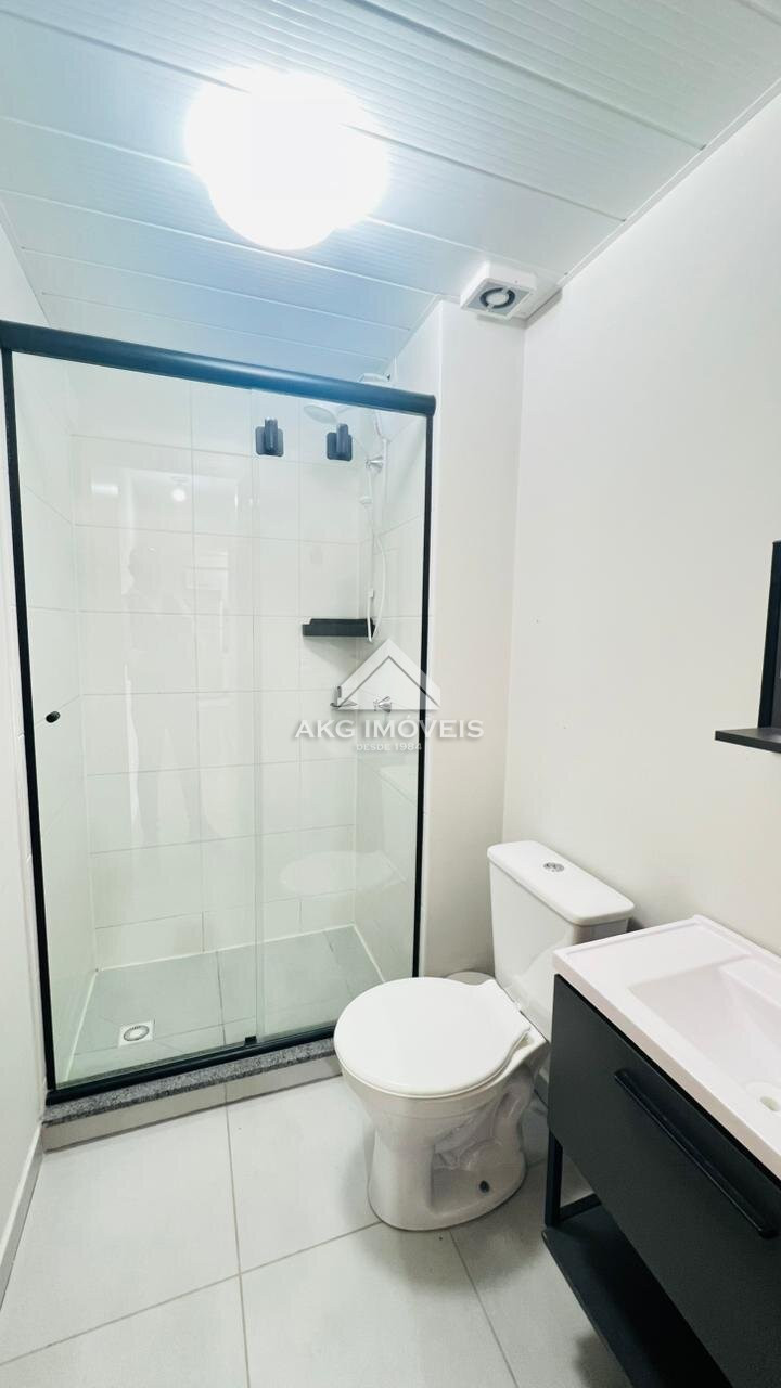 - Banheiro com armário, box blindex, espelho e metais.