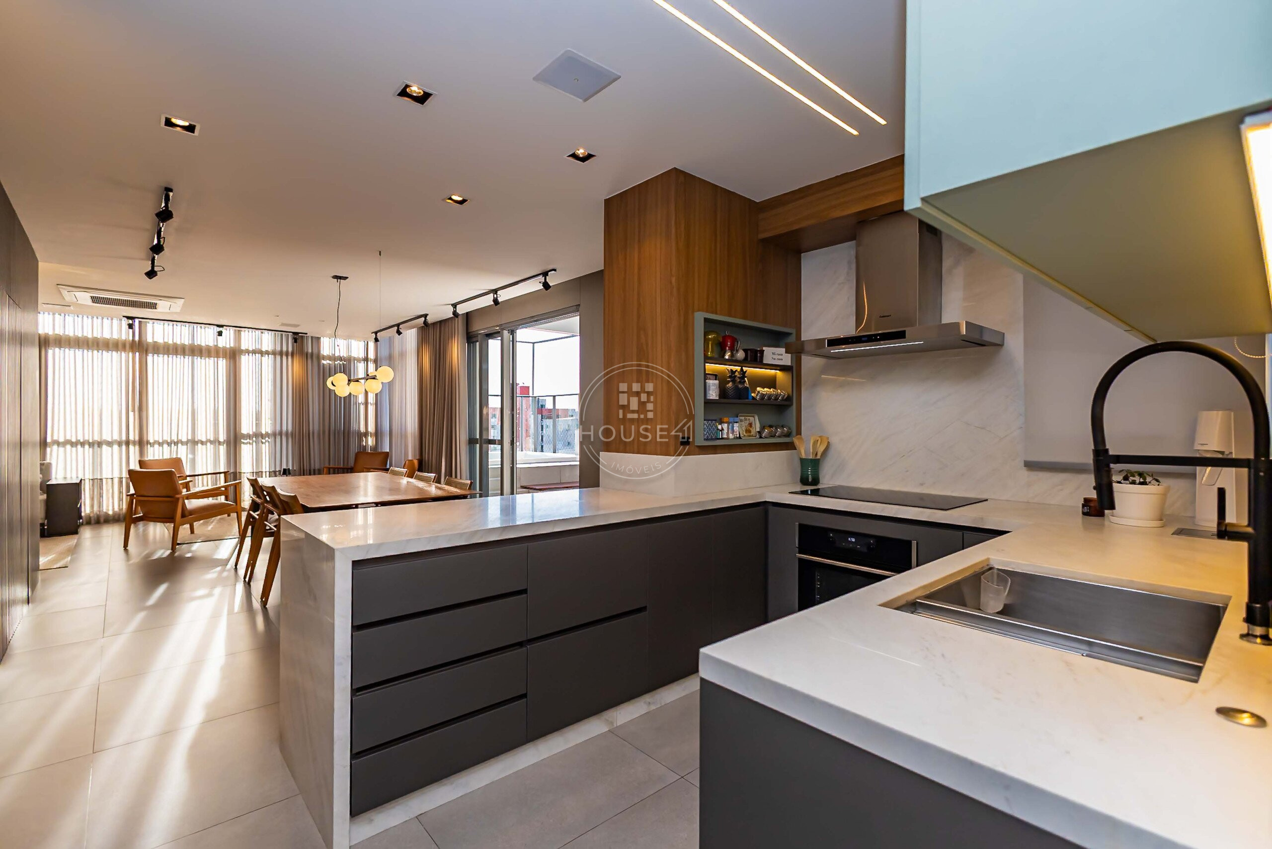 Com 265 m² privativos e face norte, o imóvel recebe iluminação natural abundante ao longo do dia, proporcionando ambientes ainda mais acolhedores e elegantes.