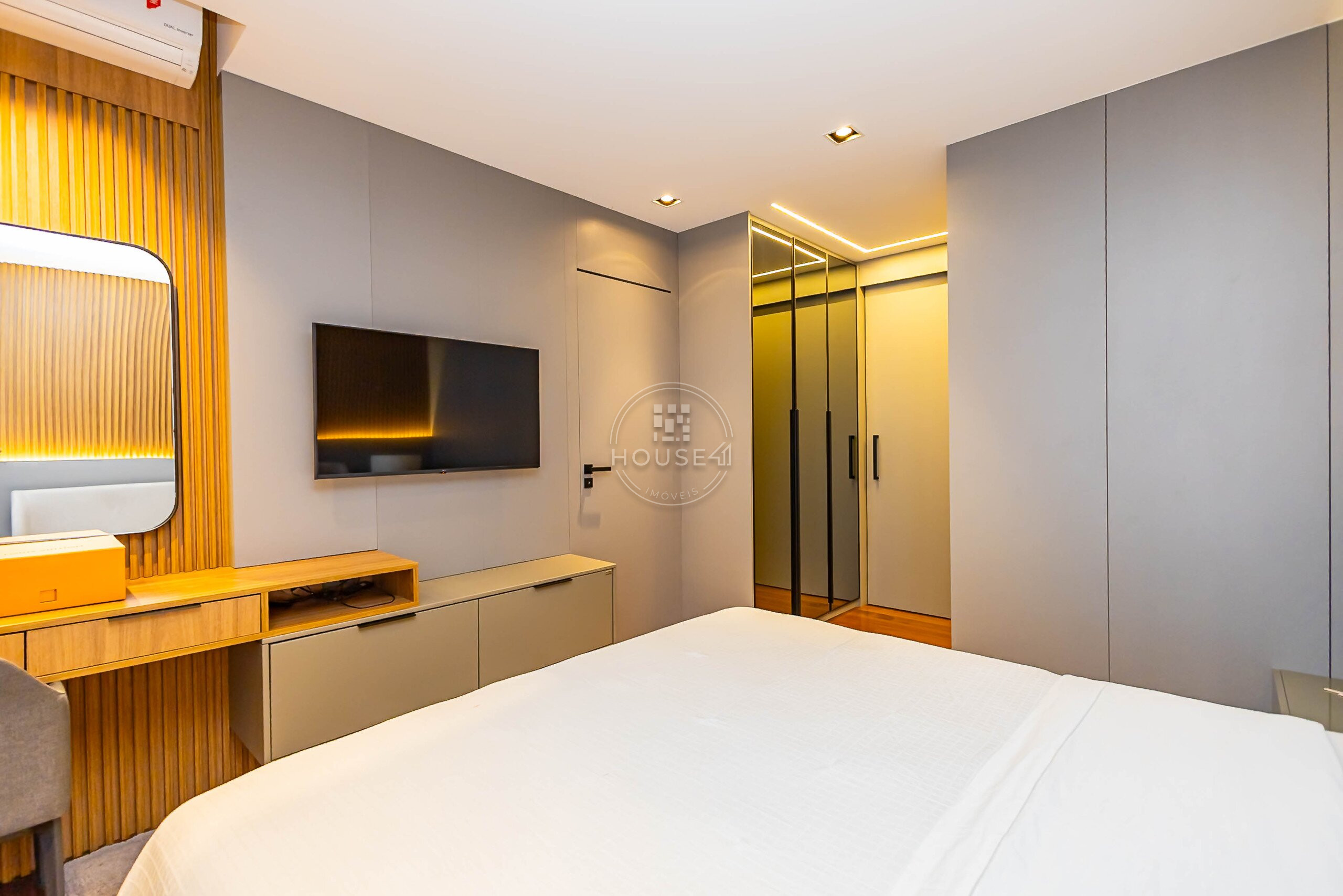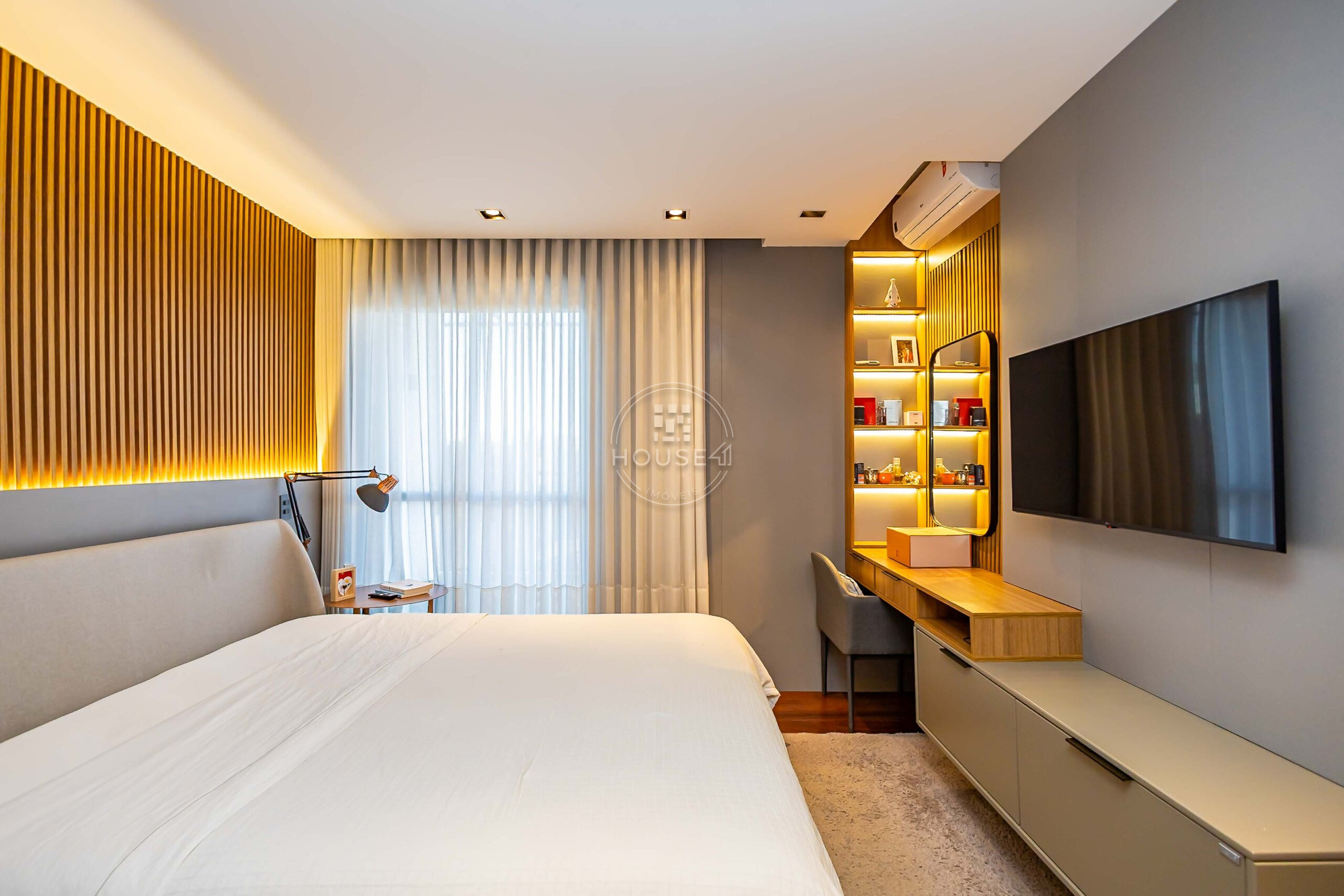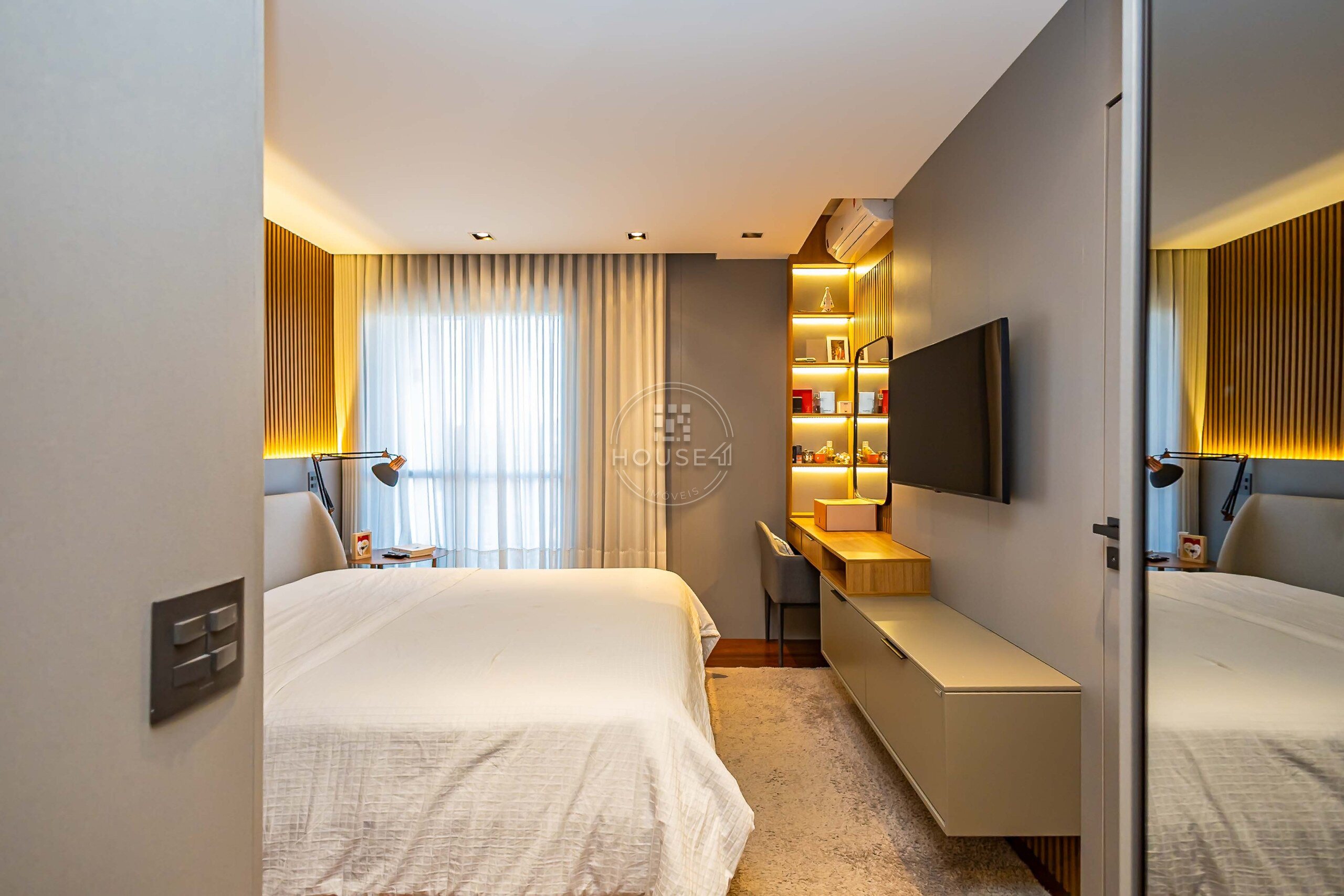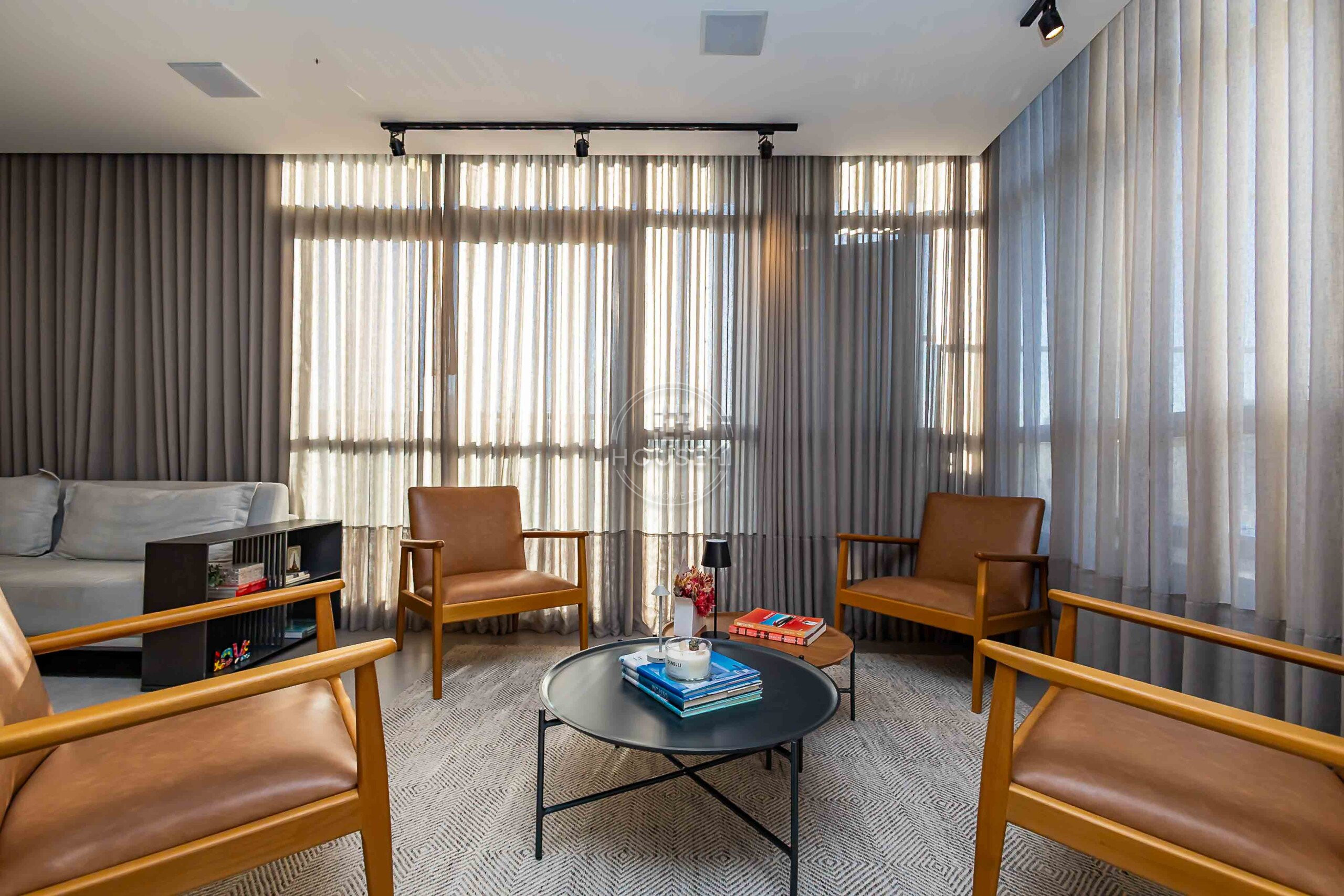 São 4 dormitórios, sendo 2 suítes, todos totalmente mobiliados e decorados com extremo bom gosto e requinte. Um projeto que valoriza conforto, sofisticação e funcionalidade.