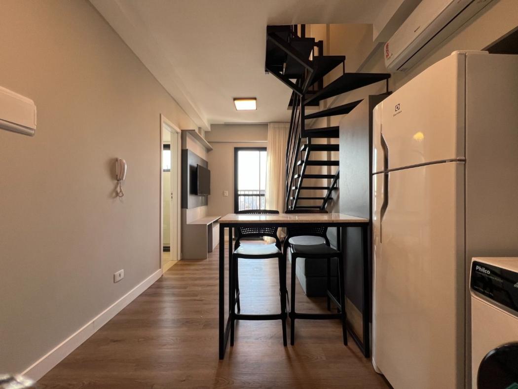 Studio com dois pavimentos, novo, na região central de Curitiba, em andar alto e perto de tudo que você precisa!