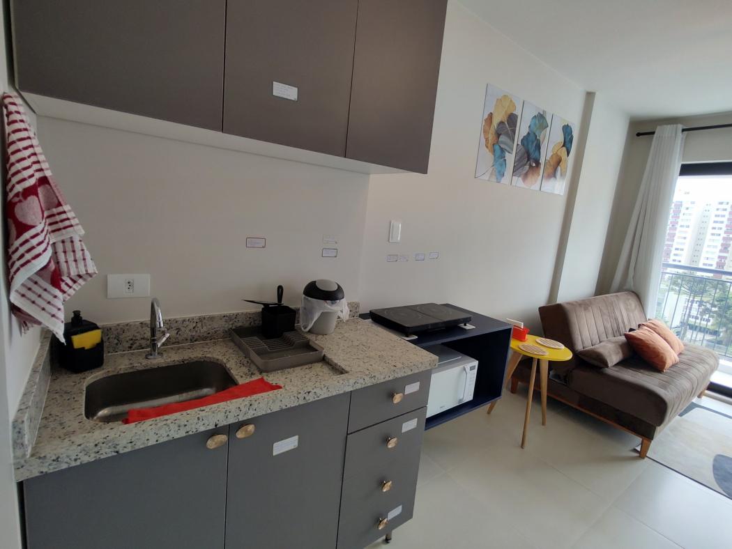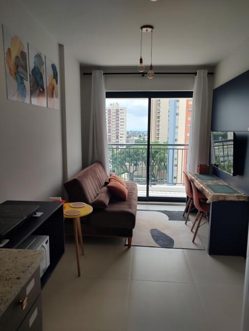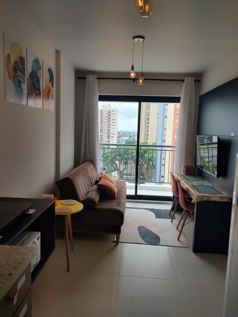 Apartamento com 1 quarto com Sacada no Plus Portão para locação, condomínio clube na av. República Argentina 3165, Portão Curitiba.