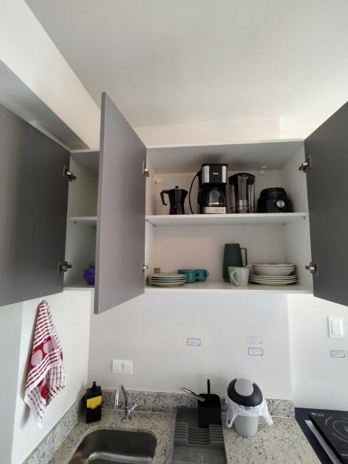 Sem vaga de garagem. Há possibilidade de alugar no prédio ou na região vaga de garagem.