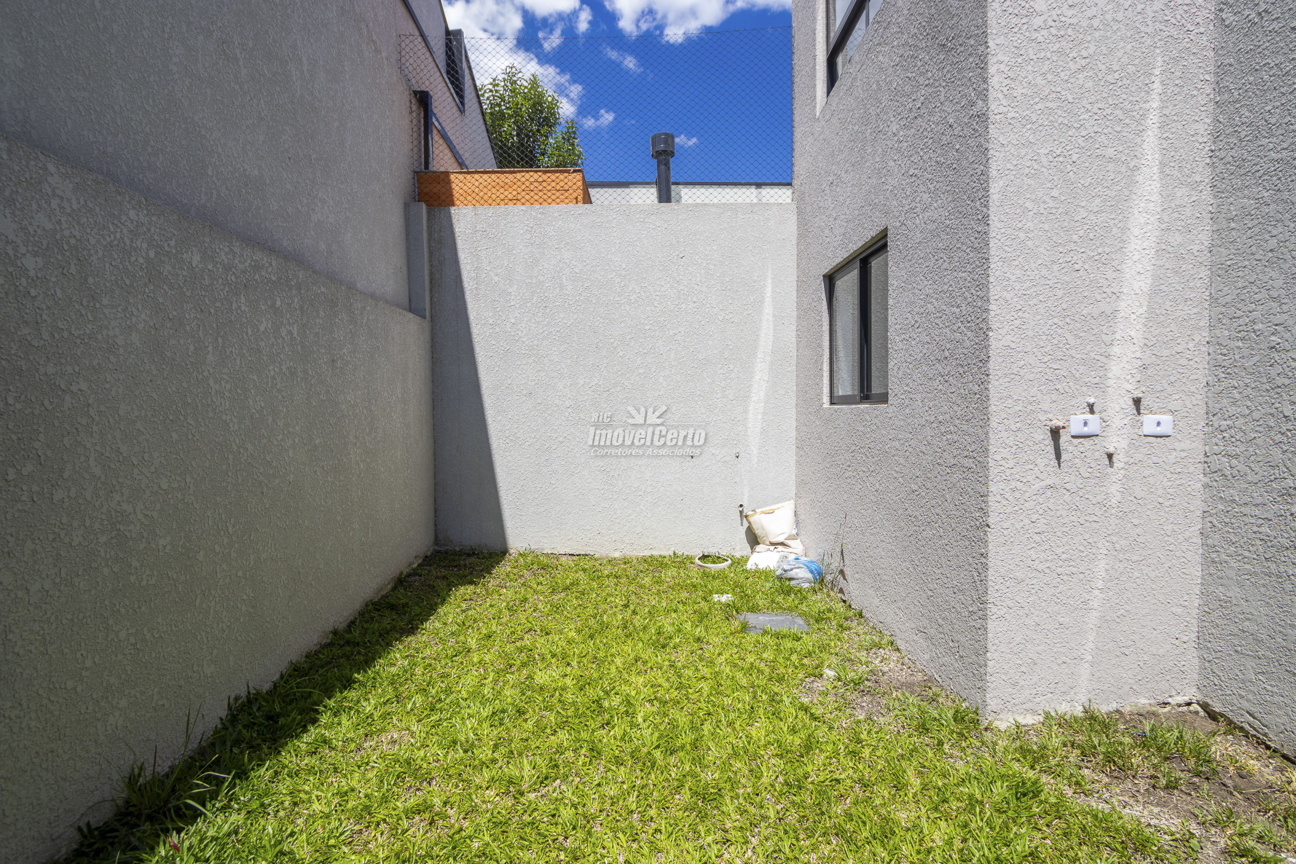 - Parede em alvenaria de tijolos, rebocadas e com aplicação de massa corrida;