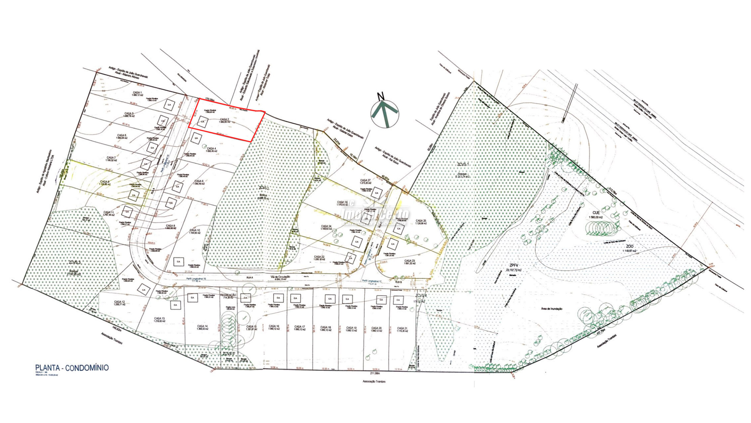Anuncio referente ao Casa 02 do condomínio, destacada na imagem do mapa em branco.